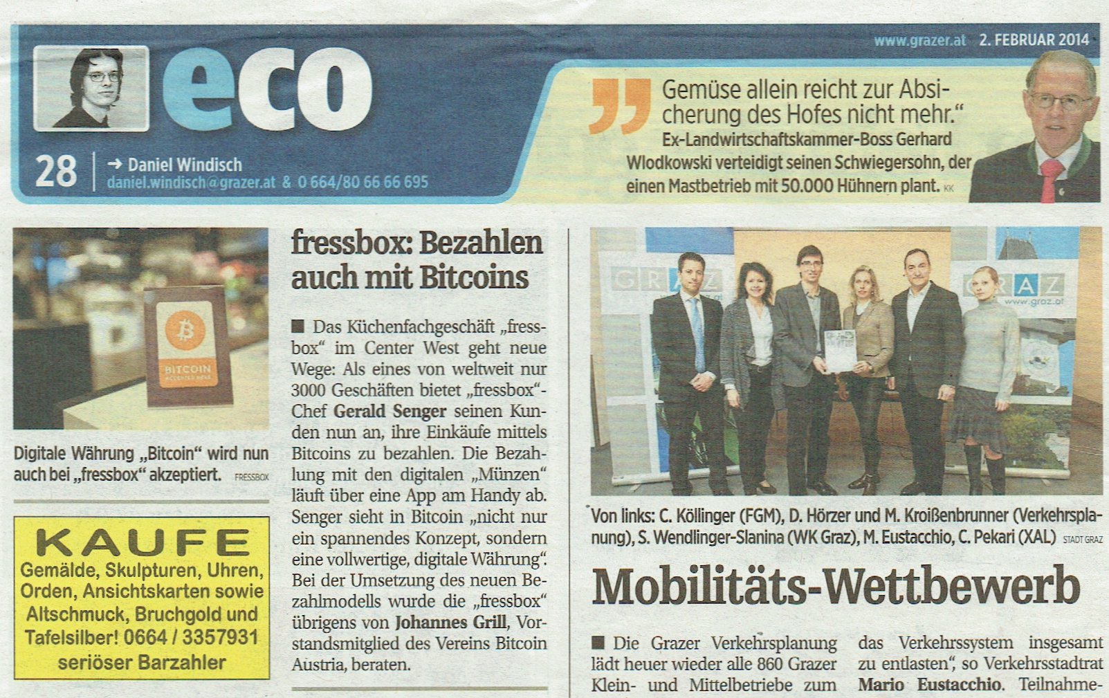 - Der Grazer / ECO: "fressbox" bietet Bezahlung mit Bitcoin (2014)